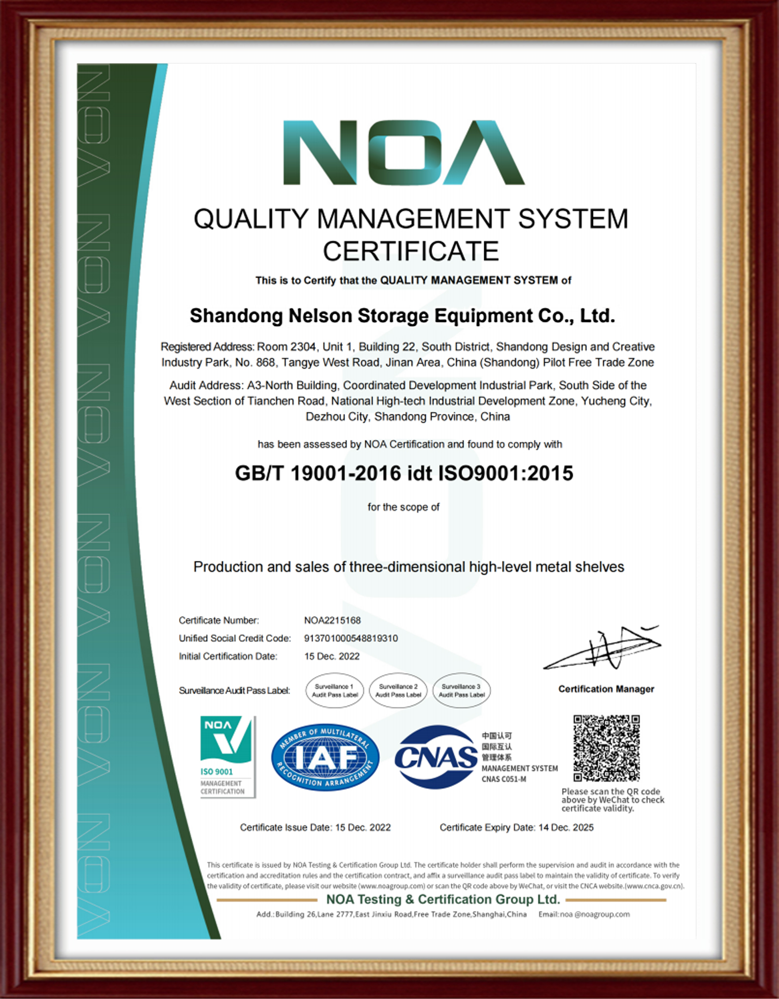 تشتهر شركة شاندونغ نيلسون لمعدات التخزين المحدودة بتركيزها على جودة معدات التخزين واللوجستيات لأكثر من 15 عامًا في الصين. بفضل خبرة 15 عامًا في الصناعة، أصبحنا روادًا متميزين في صناعة أرفف المستودعات.